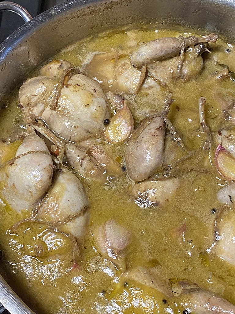 Perdices con setas en escabechee